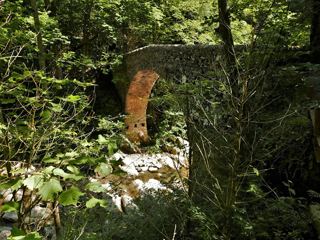 Introducció geogràfica. El Vidranès és un país de prades i boscos, rouredes seques en els terraprims i vessants solells i fagedes a les obagues. La vall del Ges té un capçal d'allò més corrugat, als vessants migjornals de la serra de Santa Magdalena de Cambrils i als encontorns dels llogarrets de Ciuret i Collfred.L'esvorell del Forat Micó. Un cop travessa el plegament més meridional del conjunt de muntanyes prepirinenques que connecten el baix Ripollès amb Osona, en el gran esvorell del Forat Micó o portell de Salgueda -nom de casa-, obrat en dos brancs de l'alineació que formen la serra de Bellmunt i la de Curull, entra de ple a la plana osonenca i finalment, tot encarant-se cap a Torelló, lliura les aigües al Ter.La regió de Vidrà, adscrita administrativament a la comarca d'Osona però geogràficament molt diferenciada, també es coneix amb el nom de Bisaura, ja que Sant Quirze de Besora s'anomenava així, Bisaura de Ter, fins a les primeres dècades del segle passat.Vidrà. Comarca d'Osona. Vall del riu Ges. Prepirineus orientals. Recorregut. Imatges dels dies 6 i 12 de setembre. La puntualització del recorregut que hem fet és la següent: Vidrà; coll de Vidrà; coll de Hi Era de Massa; puig de Bellmunt; collet del Turu; font de la Tosca; Tosca dels Degotalls; salt del Molí; pont de Salgueda; Vidrà.En el recull d'avui hi haurà moltes imatges de paisatge, algunes plantes i poc text. L'amistós visitant d'aquest espai podrà comprovar que aquest paisatge fa un pam de goig, té cops rotunds i arraps de gran bellesa.☰La Sajolida Satureja montana L. té una notable dispersió en el territori. Arrelada, a més, en espais oberts, brolles i joncedes clares, terraprims i roques, i guarnida de flors blanques, resulta sempre força vistent.☰Scabiosa columbaria L. Imatges de peus arrelats a la roca. El rocam de la zona és calcari i de natura diversa, de conglomerats, calcàries i margues. Capítol amb les flors marginals asimètriques, amb el lòbul inferior major, més curts els laterals i encara més els altres dos. S'observa, en les flors poncellades i en les del mig d'aquesta imatge, que els filaments estaminals estan blegats i encarats cap a dins, abans no es despleguen del tot, tret present en diversos grups taxonòmics.☰Asplenium fontanum (L.) Bernh. és una falguereta saxícola i calcícola, de roques ombradisses.☰La roca està tota pigada de molses i líquens com el de la foto, negrencs, gelatinosos i una mica lluents, possiblement del gènere Collema. Aquests poblaments liquènics i briofítics prosperen especialment a les roques regalimoses.☰Entre el tal·lus liquènic s'hi veuen les boletes brunes, de color olivaci, de les algues o cianobacteris del gènere Nostoc, simbionts habituals de molts líquens gelatinosos.☰Sòls forestals rics. Les galtes septentrionals de la serra de Curull, al centre, amb marc arbori, són notablement humides, humíferes i eutròfiques, amb poblaments destacables de fageda amb joliu Scillo-Fagetum i altres herbes nemorals higròfiles.☰Prats de pastura de vaquí de ventre, a la ribera del Ges i a prop de Vidrà.☰Cirsium eriophorum (L.) Scop. subsp. richterianum (Gillot) Petrak, un cardot gros i de cabeça globosa, amb les flors fent una tofa encastada damunt del gros receptacle, en forma de pilota.☰Clap d'ortigues al llarg del centre d'aquests prats. L'afemat de les buines les afavoreix. Si el trepig de les vedelles no és prou constant, potser això afavoreix que es formin aquests claps, per filloleig -Urtica dioica és rizomatosa- d'alguns peus que no gosin tocar. És una hipòtesi. Crida l'atenció com les ortigues han migpartit el prat.☰Campanula rotundifolia L., campaneta esprimatxada, en una roca de tonalitat cinèria, color molt habitual en el rocam de la zona.Sobre aquest tàxon podeu llegir-ne unes notes, si us vaga, a la Crònica de Ciuret.☰Les fulletes basals d'aquesta campaneta, sovint caduques en la maduració, són llargament peciolades, rodonenques, romboides o triangulars, de base truncada o cordada i de marge laxament dentat, sinuós.☰L'escorça d'aquest arbre, l'heura i alguns briòfits, com ara l'hepàtica Radula complanata, estan tot clapejats o banyats d'un tel negre com d'estalzim, potser una infestació fúngica.☰A tota la regió oriental els estralls provocats per l'arna del boix Cydalima són manifestos. Les boixedes esfullades, esquelètiques, fan una forta impressió.☰Diverses imatges del riu Ges, de llera molt rocallosa. Potser per això el vern no hi és gaire abundant.☰Són molts els boixos morts però també són molts els que rebroten. Aquest tenia el fullatge tendral amb un bany d'aigua, testimoniatge de la humitat de la ribera.☰Pont de Salgueda, d'un ull rodó i centre acimat.☰Clarobscur estival al riu Ges, des del pont de Salgueda.☰Replà de dalt del salt del Molí, típic topònim de dues direccions: Salt del Molí-Molí del Salt. No gaire lluny de la línia de falla del Forat Micó, el riu és tot rocós, de roques clares, possiblement calcàries o calcàries gresoses. Si aquí hi ha dèficit d'aigua, és incomparable al que pateix, enguany, la zona mediterrània i marítima, extremament eixuta.☰L'escabiosa mossegada Succisa pratensis Moench és una dipsacàcia de floració plenament estival. Farem unes simples observacions, conformes a les ja exposades en el capítol que vam dedicar a la floració d'aquest tàxon: Succisa, proteràndria i ginomonoècia.☰Estils molt llargueruts, exserts. Capítol de flors femenines amb estaminodis, rudiments o esbossos d'estams.☰Capítol central de flors hermafrodites, en fase femenina. S'hi observen els filaments estaminals ja marcits -hi ha proteràndria. Aquests peus, de poca talla, estaven arrelats en petites conquetes, a la llosa del salt. Ens va semblar que tots els capítols laterals eren de flors femenines.☰Salt del Molí, molt conegut i popular.☰La fageda amb boix Buxo-Fagetum presenta, en condicions normals,